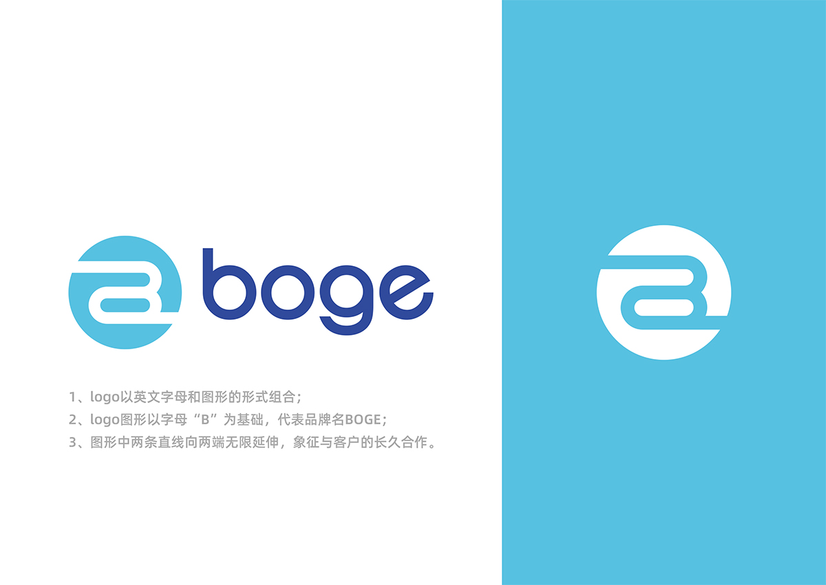 品牌介紹 :智能科技領(lǐng)域內(nèi)的技術(shù)咨詢、技術(shù)服務(wù)、技術(shù)開發(fā)、技術(shù)轉(zhuǎn)讓;自動化設(shè)備及零配件,整體是以英文字體+圖形的方式進(jìn)行的logo設(shè)計,LOGO是以B為基礎(chǔ)進(jìn)行的延展設(shè)計,是BOGE的首字母,圖形中2條線無線延伸,寓意和客戶保持長久的合作,整體風(fēng)格簡潔、科技感是具有國際范logo設(shè)計。