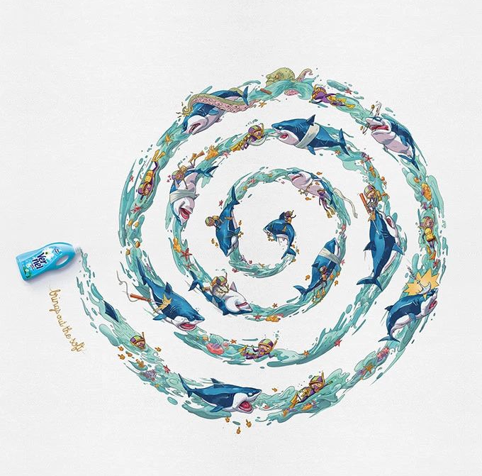 ③我們還可以利用一些特殊的曲線(xiàn)形態(tài),來(lái)為個(gè)人的平面作品增添幾分趣味感。例如:運(yùn)用水紋狀的曲線(xiàn)(又稱(chēng)波浪線(xiàn)),此種曲線(xiàn)在外部形態(tài)上與水紋相似,將它以組合的形式編排到畫(huà)面中,可使畫(huà)面整體的韻律感得到提升。