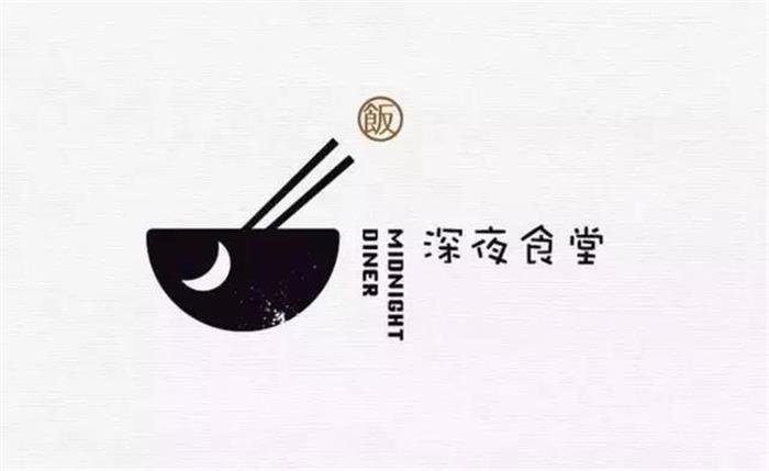 深夜食堂LOGO設計標志是一個碗筷的造型,上面加上了篆書的飯字的品類屬性,碗上加入月牙的造型,顯得LOGO比較有意境。