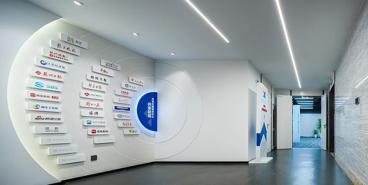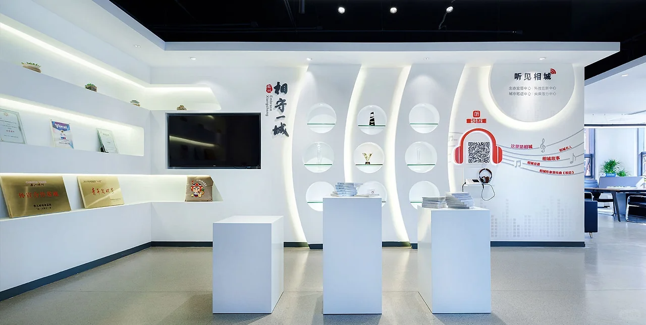 文化墻不應(yīng)是孤立的墻面裝飾,而應(yīng)與展廳整體空間形成互動(dòng)。可結(jié)合墻面的結(jié)構(gòu)特點(diǎn),設(shè)計(jì) “嵌入式” 或 “延伸式” 造型,讓文化墻成為空間的有機(jī)組成部分。